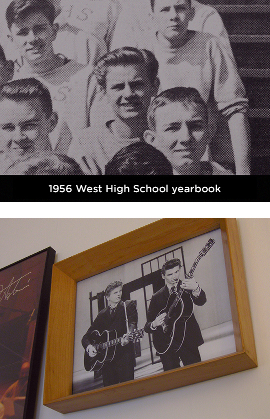 Our hearts are heavy tonight. We have loved the music of the Everly Brothers all our lives. They recorded so many great songs! As fans, we were excited to discover that the Everly family had lived just a couple blocks from here back when Don and Phil were teenagers going to West High School. Apparently, they had long hair and cool clothes from the very beginning! The sound of the Everly Brothers was magic. Thank you, Phil—your music will last forever.