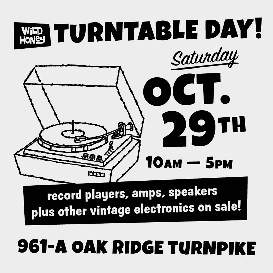 Looking for a turntable? Along with buying record collections, we’ve picked up some nice vintage turntables and other audio equipment over the last year. We’ve had them in storage, but we’re bringing them out at our Oak Ridge shop on Saturday October 29th at 10am… see you at Wild Honey!