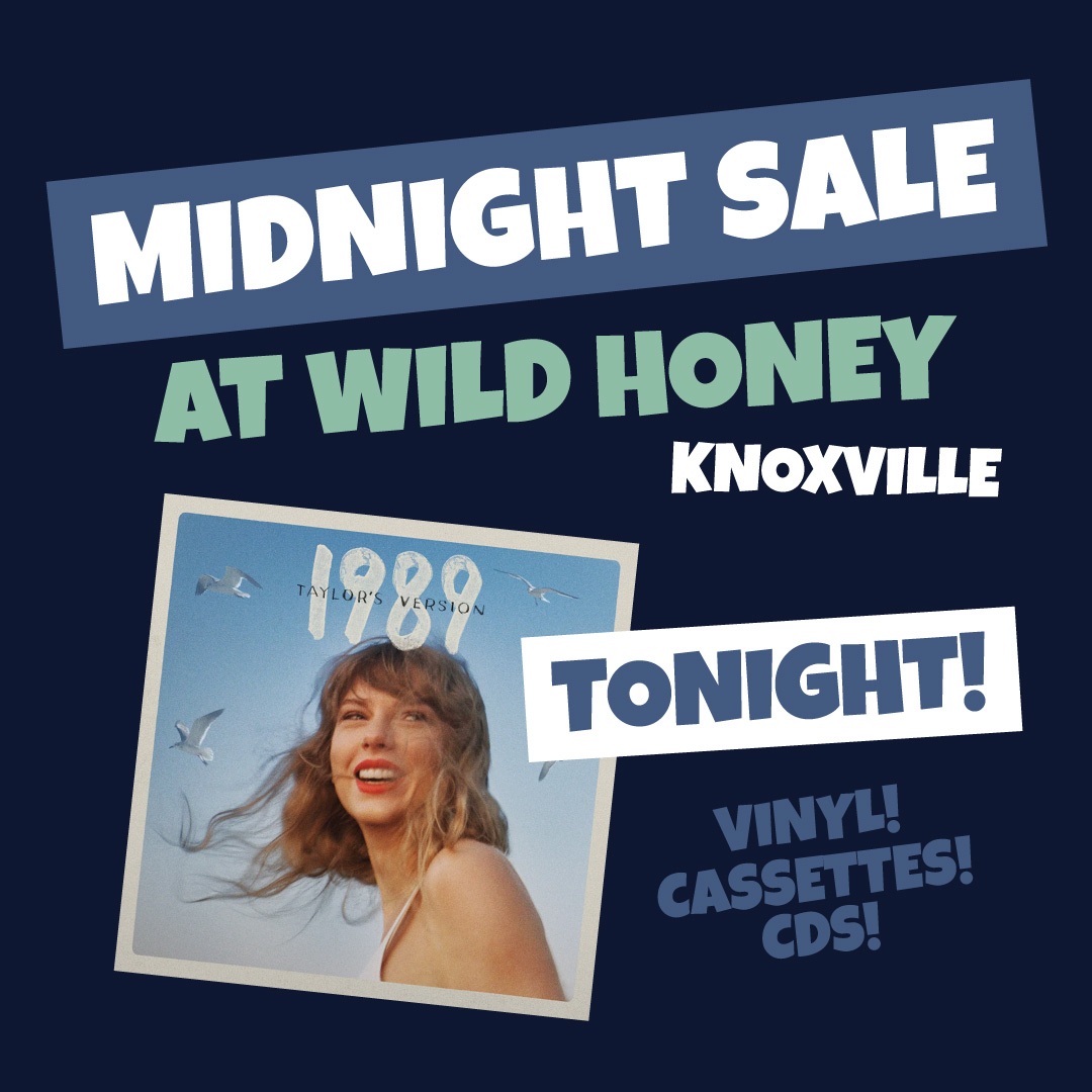 MIDNIGHT SALE TONIGHT in Knoxville! Later tonight, as Thursday turns into Friday, we’ll open our doors at exactly 12:01am — at that point, we’ll begin offering 1989 (Taylor’s Version) on vinyl, cassettes, and cds… See you at Wild Honey!